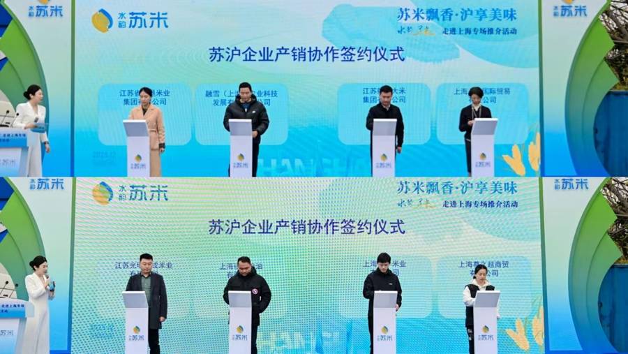 记者在现场了解到,“水韵·苏米”已构建起“省域公用品牌、地理标志、企业品牌三级联动”的成熟体系,实现了与各市、县域优质品牌的深度融合。此次来沪推介标志着苏沪粮食领域合作迈入以品牌为引领、以品质为核心的新阶段,未来将以高效协同的品牌矩阵立足上海市场深厚根基,驱动苏沪粮食合作实现价值链的全面跃升,完成从“传统贸易”向“产业生态共建”的战略升级。