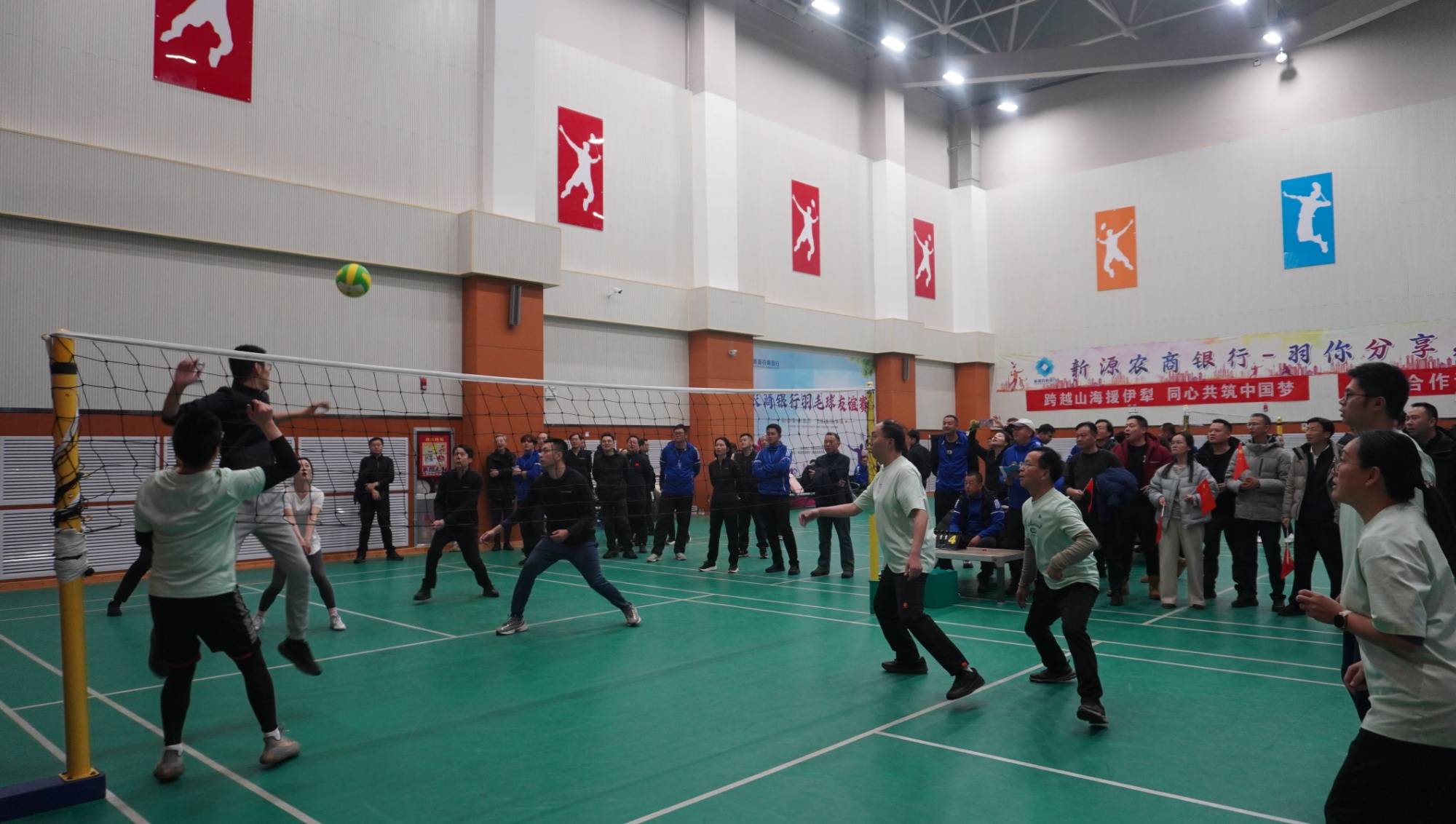 比赛当天,在新源县公共体育馆内,拔河、定点投篮、气排球、乒乓球、羽毛球五项竞技接续上演,沸腾的热情瞬间加热了冬日的暖阳。益智活动让参赛选手们聚精会神,配合协作,诠释了“团结就是力量”的真谛。赛场上,队员们或紧握长绳、躬身聚力,或凝神瞄准、抬手投篮,或默契传接、精准拦网,或挥拍对垒、敏捷攻防,每一幕都彰显着团结拼搏的精神。赛场下,助威声、呐喊声此起彼伏,将现场氛围推向高潮,笑容写满在大家的脸庞。