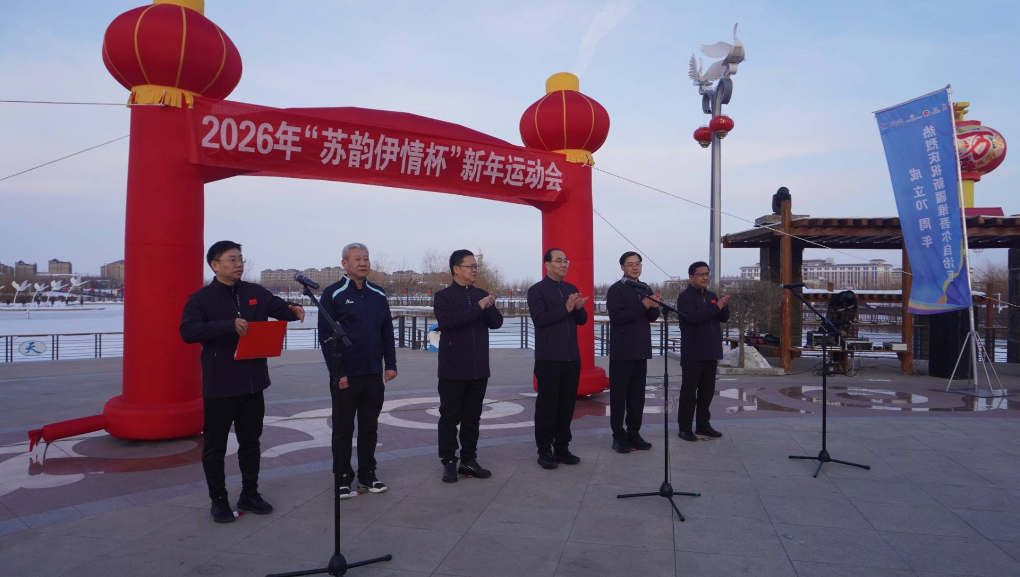 近日,由江苏援伊前方指挥部主办,新源县人民政府、江苏援伊·扬州工作组、新源县文化体育广电和旅游局承办,江苏省发展体育基金会协办的2026年“苏韵伊情杯”新年运动会在新源县天鹅湖公园启幕。