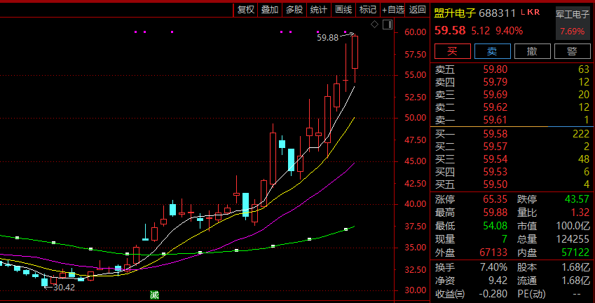 盟升电子主要产品包括卫星导航、卫星通信、电子对抗等,公司系当前A股的牛股之一。自去年11月下旬以来,公司股价累计涨幅超过90%。
