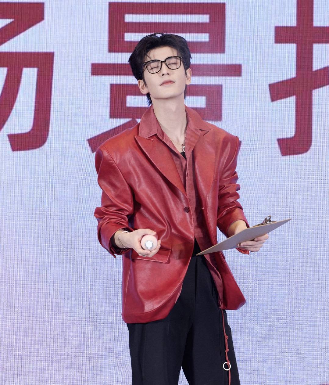 造型的点睛之笔在于全套Chopard萧邦珠宝的加持,在灯光下折射出冷冽而克制的金属光泽,与酒红皮衣的光泽质感交相辉映,贵气感瞬间拉满。搭配一副黑框眼镜,更添几分理性与深邃,整体氛围宛如从时尚杂志中走出的“吸血鬼贵公子”,矜贵、冷峻又不失温度,将“精英感”与“感”诠释得淋漓尽致。
