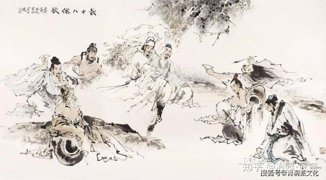 对社会各界饮酒形态,诗人描述最为深刻,杜甫《饮中八仙歌》:“知章骑马似乘船,眼花落井水底眠。汝阳三斗始朝天,道逢麴车口流涎,恨不移封向酒泉。