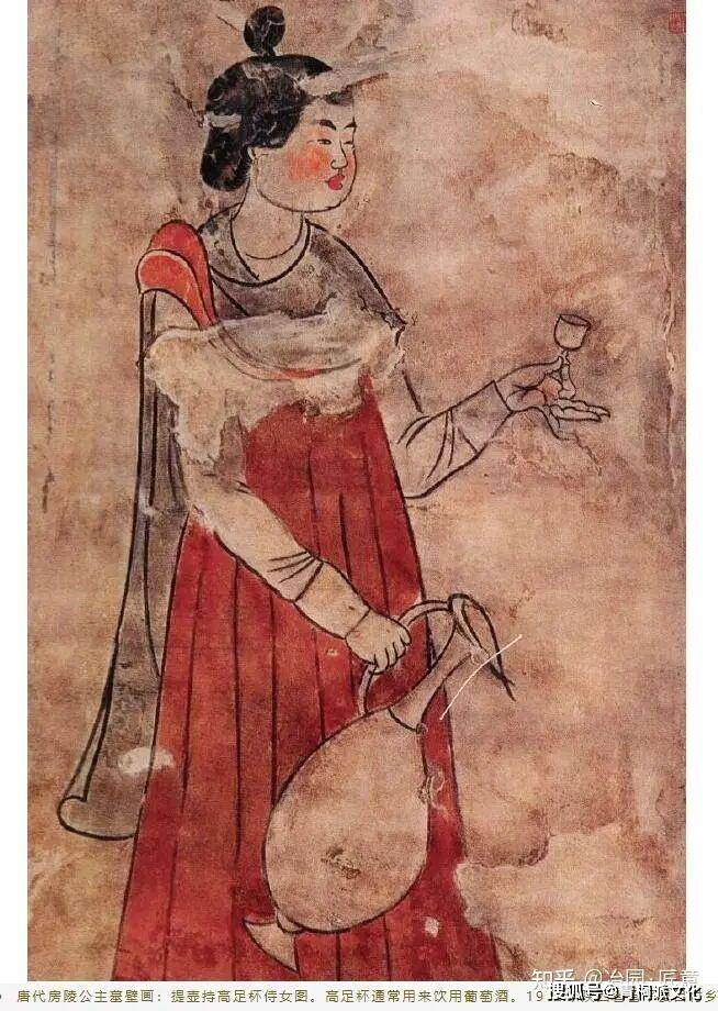 唐以前,葡萄酒多为西域贡送,自唐太宗通西域,葡萄酒酿造技术传入中原,饮用葡萄酒逐步多起来。唐一代,葡萄酒为军旅更受欢迎的美酒,尤其边塞地区。