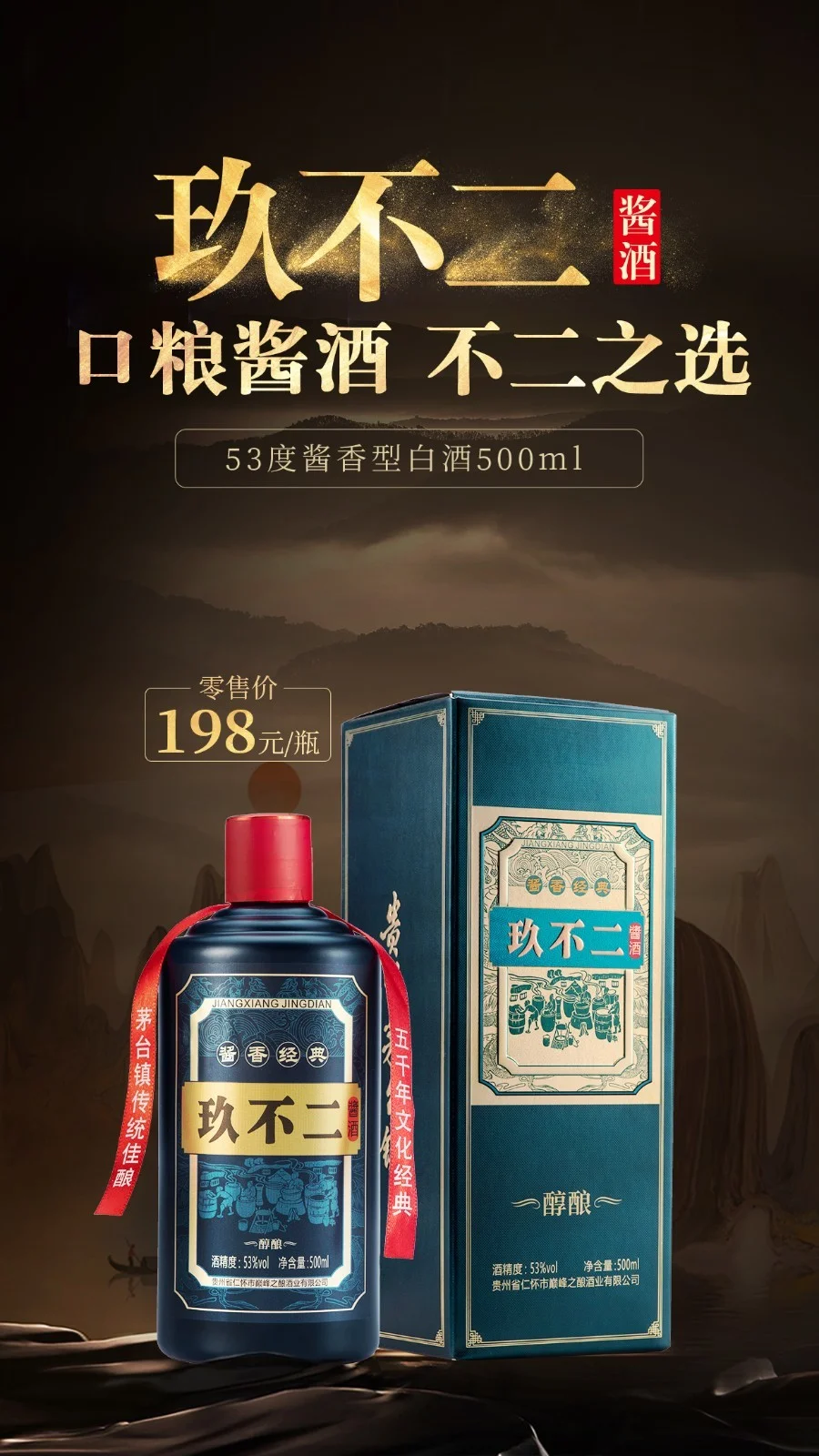 在如此经济的价格区间,「玖不二」依旧坚持采用“12987”工艺,一年一个生产周期,两次投粮,九次蒸煮,八次发酵,七次取酒,传承传统的坤沙酱酒酿造工艺,延续酱香经典。酒体醇厚、回味悠长、空杯留香持久,饮用不上头、醒酒快。