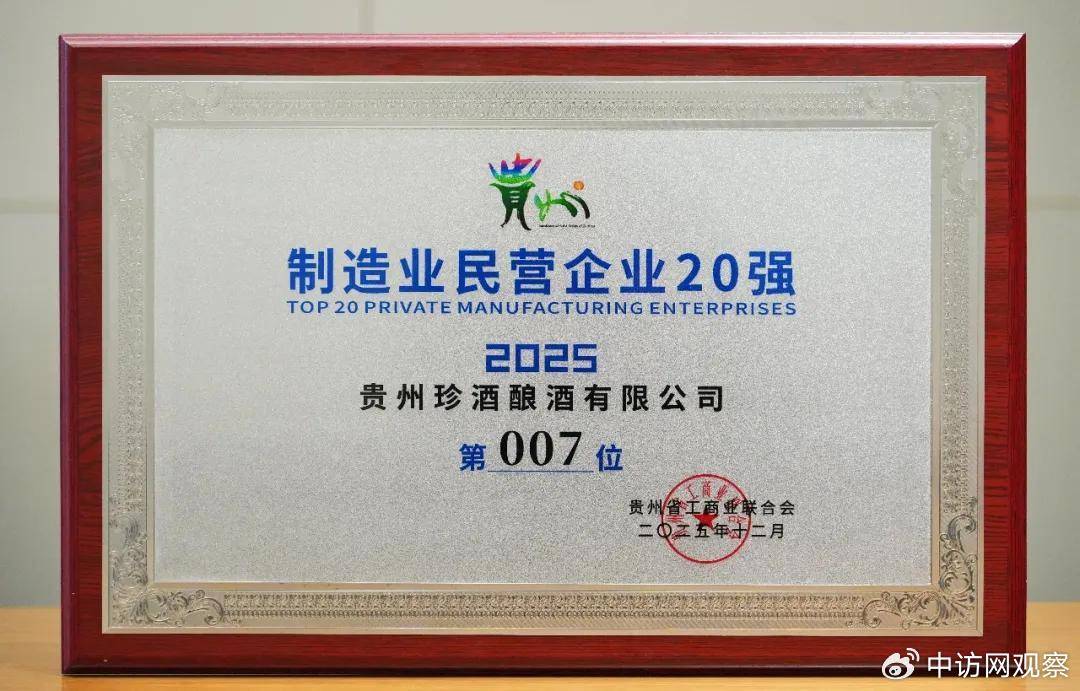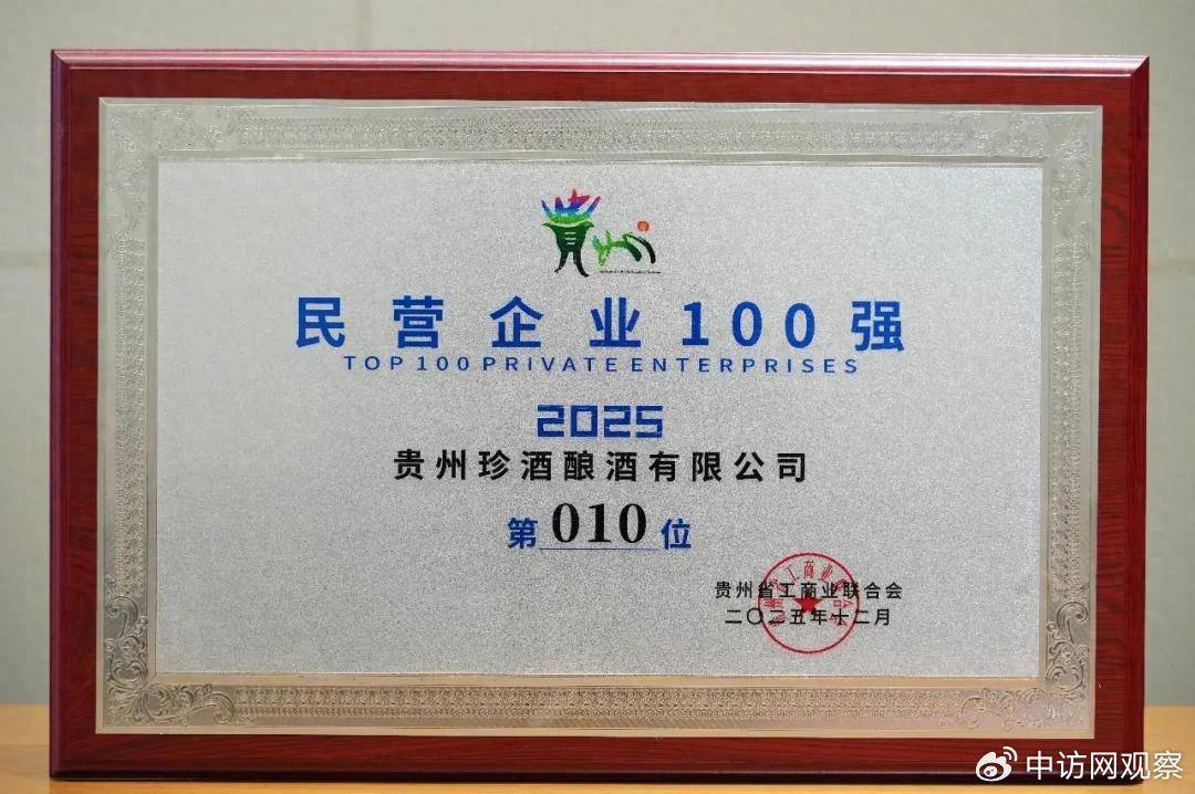 12月24日,贵州省工商业联合会在贵阳召开2025年贵州民营企业100强发布会,发布“2025贵州民营企业100强榜单”和“贵州制造业民营企业20强”榜单。贵州珍酒以强劲综合实力,位列贵州民营企业100强第10位、贵州制造业民营企业20强第7位,蝉联贵州民营酒企。