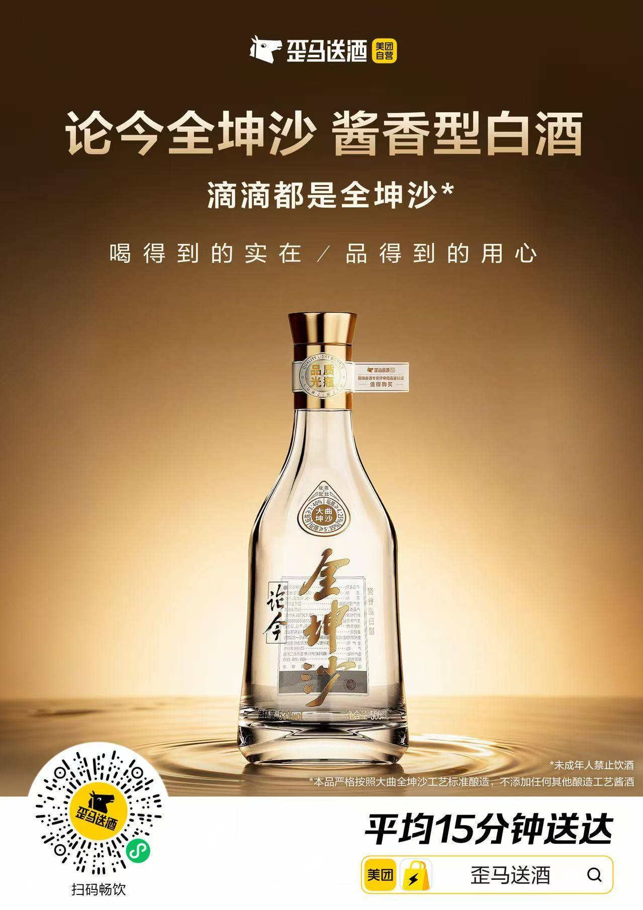 歪马送酒的即时零售渠道携手川酒集团的品质积淀,既重塑了百元酱酒的品质基准,也打开了白酒即时零售的品质化通路。而“论今・全坤沙”全面上线,不仅回应了消费者对高质价比酱酒的旺盛需求,也为白酒行业的创新发展提供了新思路。