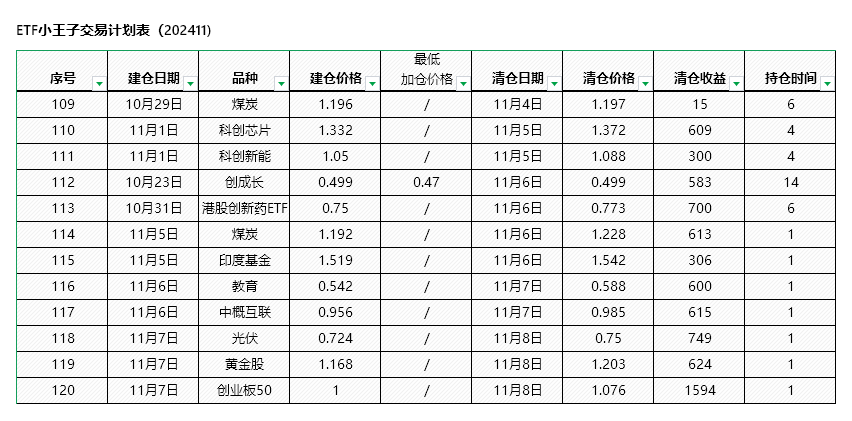 煤炭:4日卖出是为了腾出资金加仓科创系列品种。5日再次买回是因为科创系列都止盈了。而煤炭还比4日的价格低。然后6日止盈。
