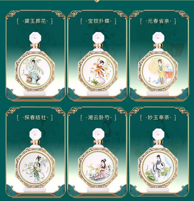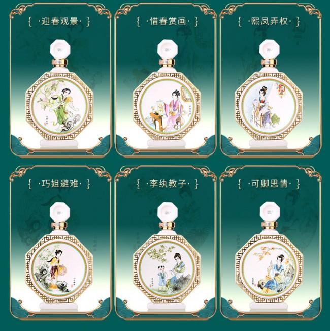 春夏秋冬红楼梦十二金钗酒再次在文化赋能上,十二生肖酒采用的是十二生肖文化,这也正赋予了这款酒特殊的意义。而春夏秋冬十二金钗酒则是采用在我国文学史上有着极其重要地位的《红楼梦》为主题衍生设计的文创作品。正所谓“半部论语治天下,一部红楼懂人生”,这款产品把红学文化与酒文化巧妙结合,十二瓶、十二金钗、十二幅经典画作、十二个经典故事,以书画设计为表现形式,探索《红楼梦》文创衍生品设计在继承原作精神内核的同时,对其文化内涵进行视觉转化。是一款不可多得的集国学文化、陶瓷文化、书画文化、酒文化为一体的文化艺术精品,不仅具有品鉴价值还具有很高的珍藏价值。