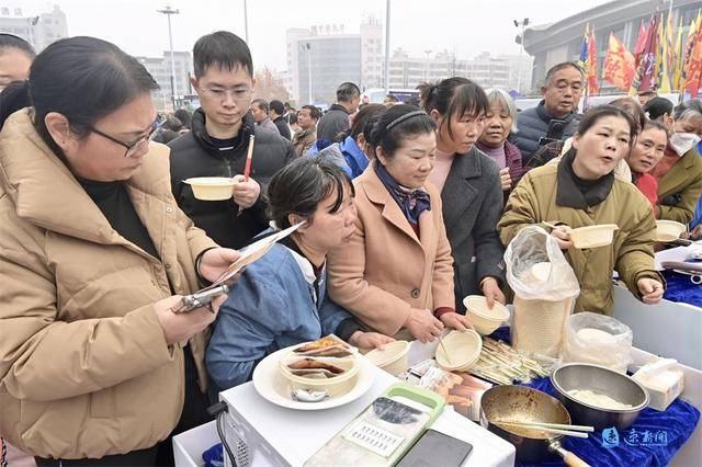 “欢迎品尝我们宿迁的擀面皮。”现场工作人员招呼着永州市民。